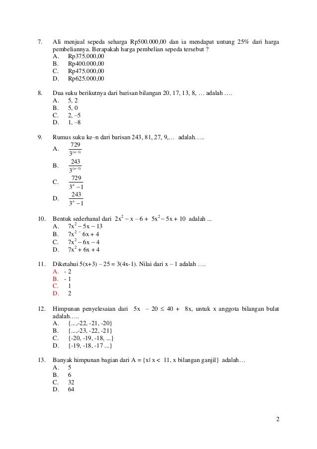 Dengan menggunakan rumus ini, kita tidak harus mencari nilai a, cukup dengan suku yang diketahui pada soal. Pada materi kali ini akan membahas tentang Cara mencari suku ke-n dari barisan aritmatika maka harus dipahami secara konsep karena materi ini akan dijumpai lagi pada tingkat sekolah selanjutnya. Berikut pembahasan materi dan jawaban lengkap siswa SMP Sederajat disiarkan di TVRI melalui program belajar dari rumah.