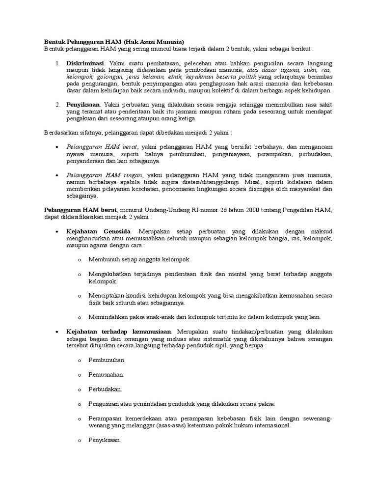 Tapi tahukah kamu apa sajakah dasar dan landasan hukum penegakan HAM di Indonesia? Salah satu tantangan terberat dalam upaya penegakan HAM adalah adanya pelanggaran HAM. Berikut ini bukan merupakan contoh lembaga nonpemerintah yang bergerak dalam bidang HAM adalah. Norma yang mengatur hak asasi manusia dalam masyarakat yakni Undang-Undang atau disingkat UU. Pengadilan HAM adalah pengadilan khusus terhadap pelanggaran HAM berat yang diharapkan dapat melindungi hak. Bebas dalam menindak pelanggaran HAM. d.