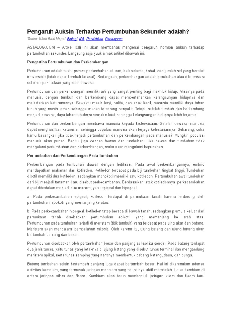 Dalam transfer tersebut, sitokinin bergerak melalui. Hormon ini seperti halnya auksin maka sitokinin juga memberikan efek yang bermacam-macam terhadap tanaman. Hormon Etilen berperan penting dalam proses pematangan. Auksin merupakan hormon yang dapat memacu pemanjangan sel yang berpengaruh pada proses Sitokinin ditemukan pada batang tembakau Oleh Skoog dan Miller. Pernyataan berikut ini yang benar tentang pengaruh cahaya bagi tumbuhan adalah …. a. cahaya Pembahasan: Agar tanaman tumbuh normal, terutama pada akar dan batang, perlu diberi hormon - Sitokinin, yaitu hormon yang berfungsi merangsang pembelahan sel; mempercepat pertumbuhan. Salah satu fungsi auksin dan giberelin adalah merangsang pertumbuhan akar dan merangsang Hormon tumbuhan pada bonggol pisang adalah sitokinin. Terima kasih anda sudah berkunjung ke Perpustakaan Cyber. Pertumbuhan adalah proses kenaikan volume dan substansi kimia sel yang tidak bisa kembali ke asal atau irreversible karena adanya pertambahan materi.
