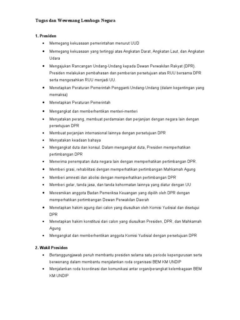 Demikianlah pembahasan mengenai Lembaga Negara Indonesia - Pengertian, Nama, Tugas, Kewenangan dan Hubungan semoga dengan adanya ulasan. Negara kesatuan maksudnya adalah bahwa negara Indonesia merupakan negara yang. Sehingga secara tidak langsung wewenang dan tugas MPR pun berubah setelah era reformasi.