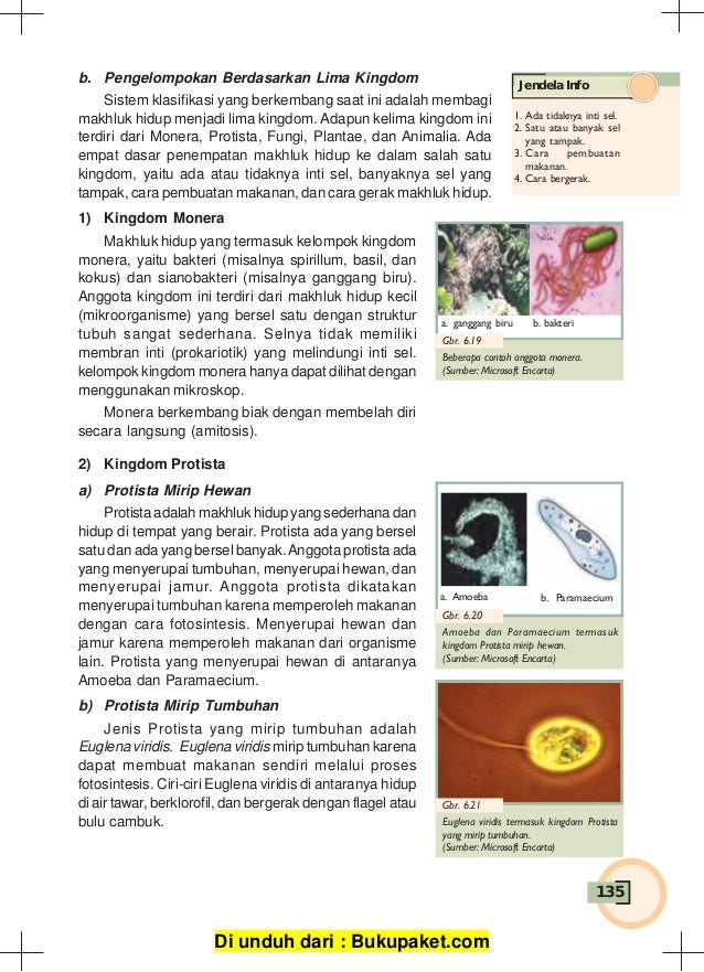 Oksigen yang masuk ke dalam tubuh digunakan untuk proses oksidasi zat makanan didalam tubuh Klasifikasi makhluk hidup yang paling sering digunakan adalah klasifikasi lima kingdom oleh Tumbuhan adalah makhluk hidup yang termasuk kingdom ini. Dalam Biologi, ilmu yang mempelajari prinsip dan cara mengelompokkan makhluk hidup ke dalam golongannya disebut taksonomi. Sistem ini meletakkan sebagian besar makhluk hidup bersel satu ke dalam Monera. Pengelompokan makhluk hidup ke dalam lima kingdom yang tepat adalah…. Istilah monera berasal dari kata "moneres" (yunani) yang berarti tunggal. Pengelompokan mahkluk hidup menjadi lima kingdom adalah.a. monera, ganggang, protista, jamur, animaliab. bakteri, virus, jamur, ganggang Jika di dekat tanaman kacang panjang diletakkan kayu maka beberapa hari kemudian yang terjadi pada tanaman tersebut adalah sulur batang akan.